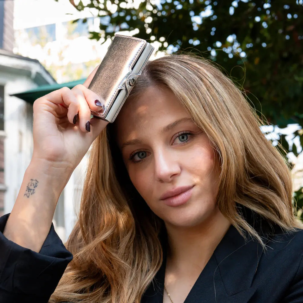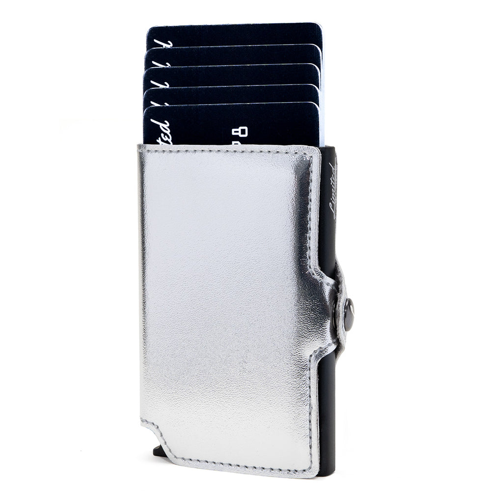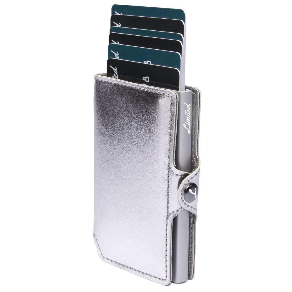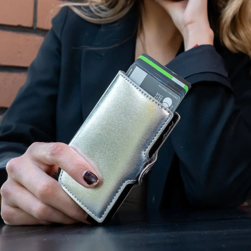 - ¡Puedes guardar hasta 12 tarjetas! 4 tarjetas con relieve o 6 tarjetas lisas en el interior metálico y de 4 a 6 tarjetas en los bolsillos interiores.
