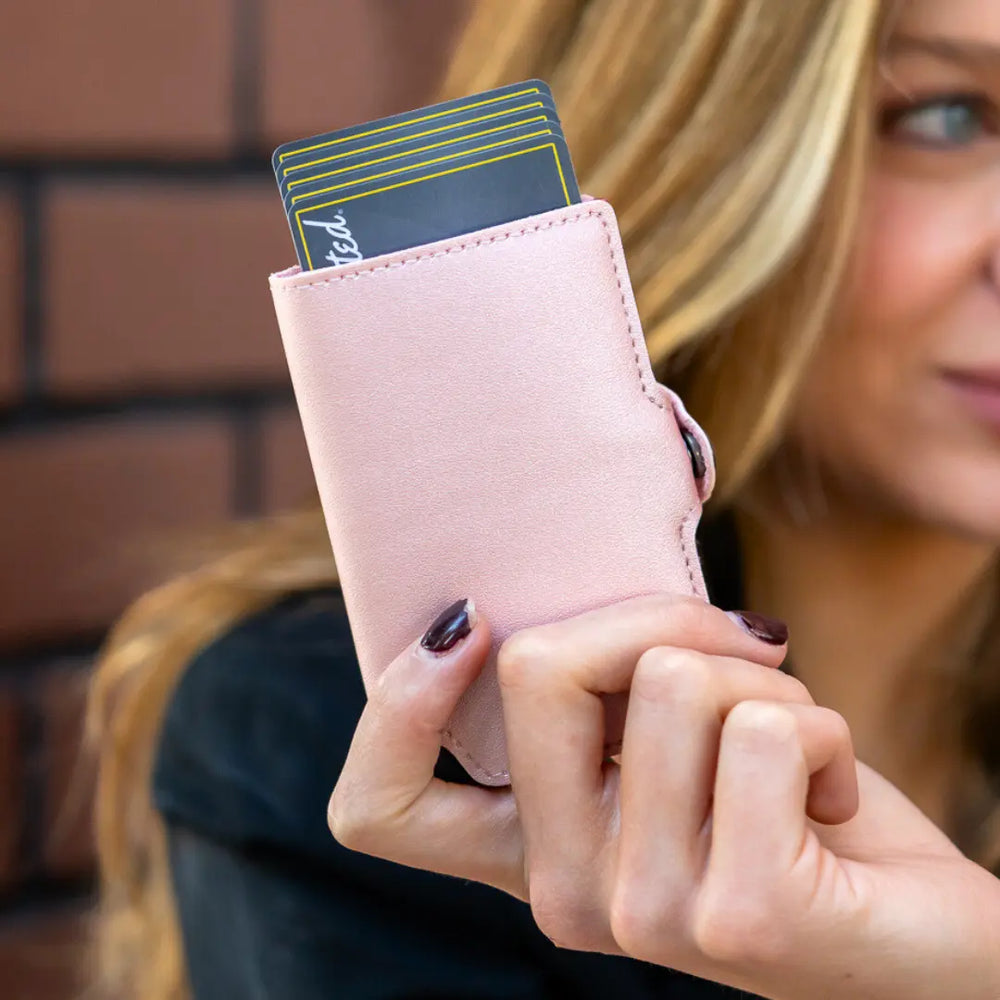Hasta 12 Tarjetas (4-6 en el interior metálico, y de 4 – 6 en los bolsillos)