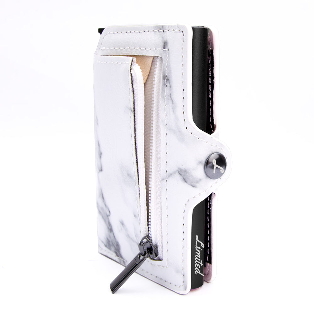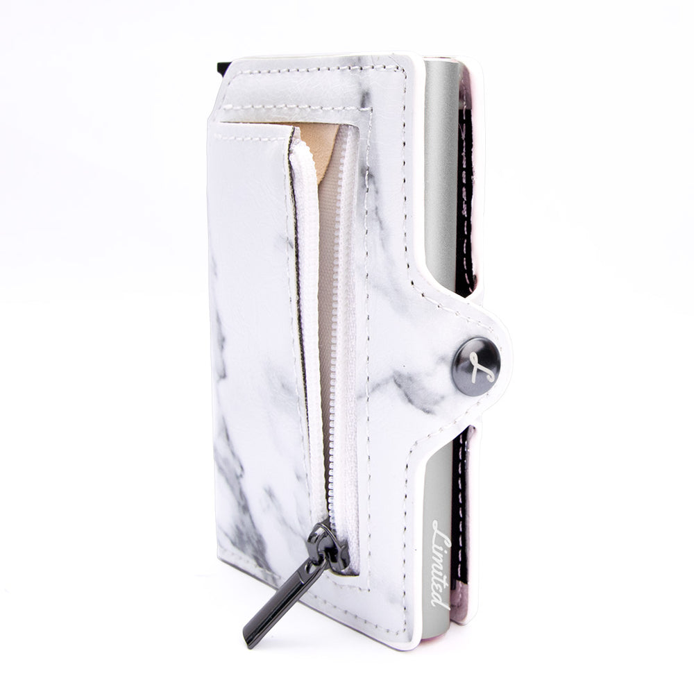 - ¡Puedes guardar hasta 12 tarjetas! 4 tarjetas con relieve o 6 tarjetas lisas en el interior metálico y de 4 a 6 tarjetas en los bolsillos interiores.