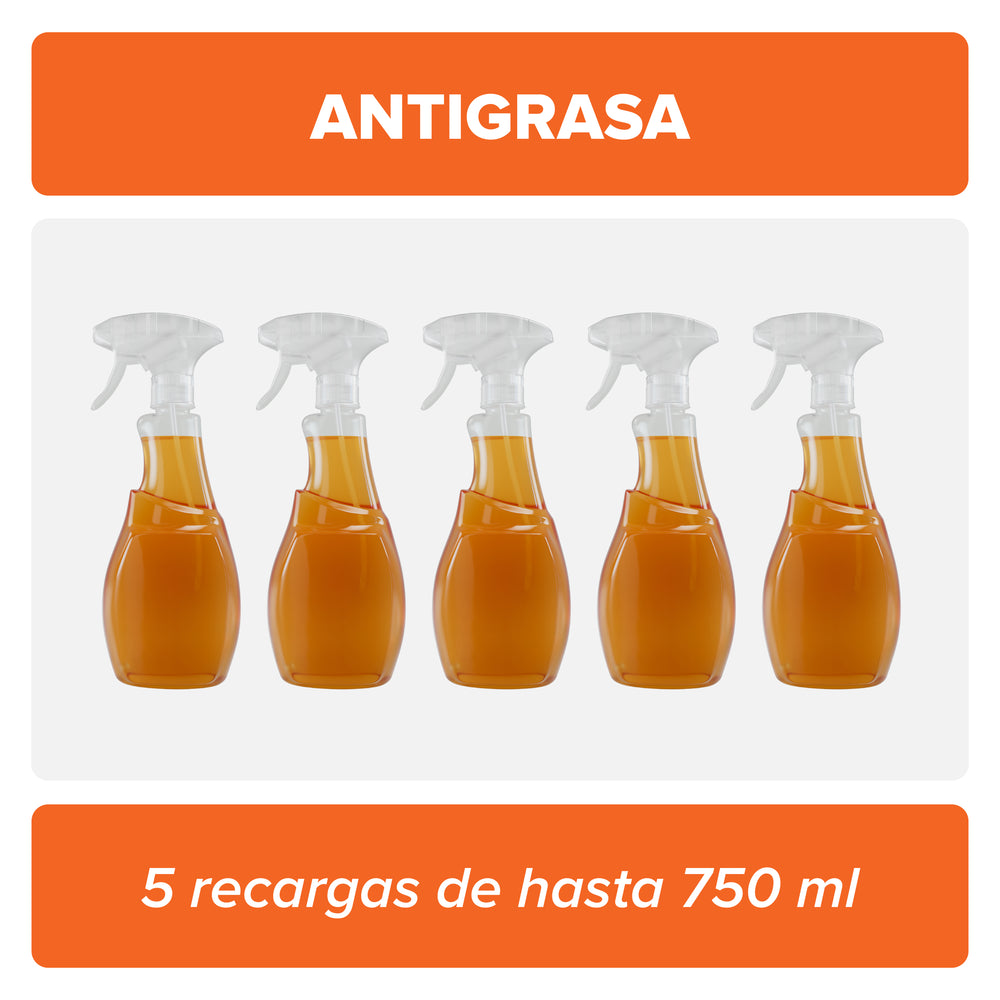 Antigrasa (3 recargas) + 1 botella reutilizable: Prepara hasta 2.3 litros de un limpiador agresivo contra las grasas pero cuidadoso con el medioambiente. Libera a tu chef interior, cocina y ensucia! Con Nanolife la limpieza es más fácil y agradable (disponible en aroma cítrico).